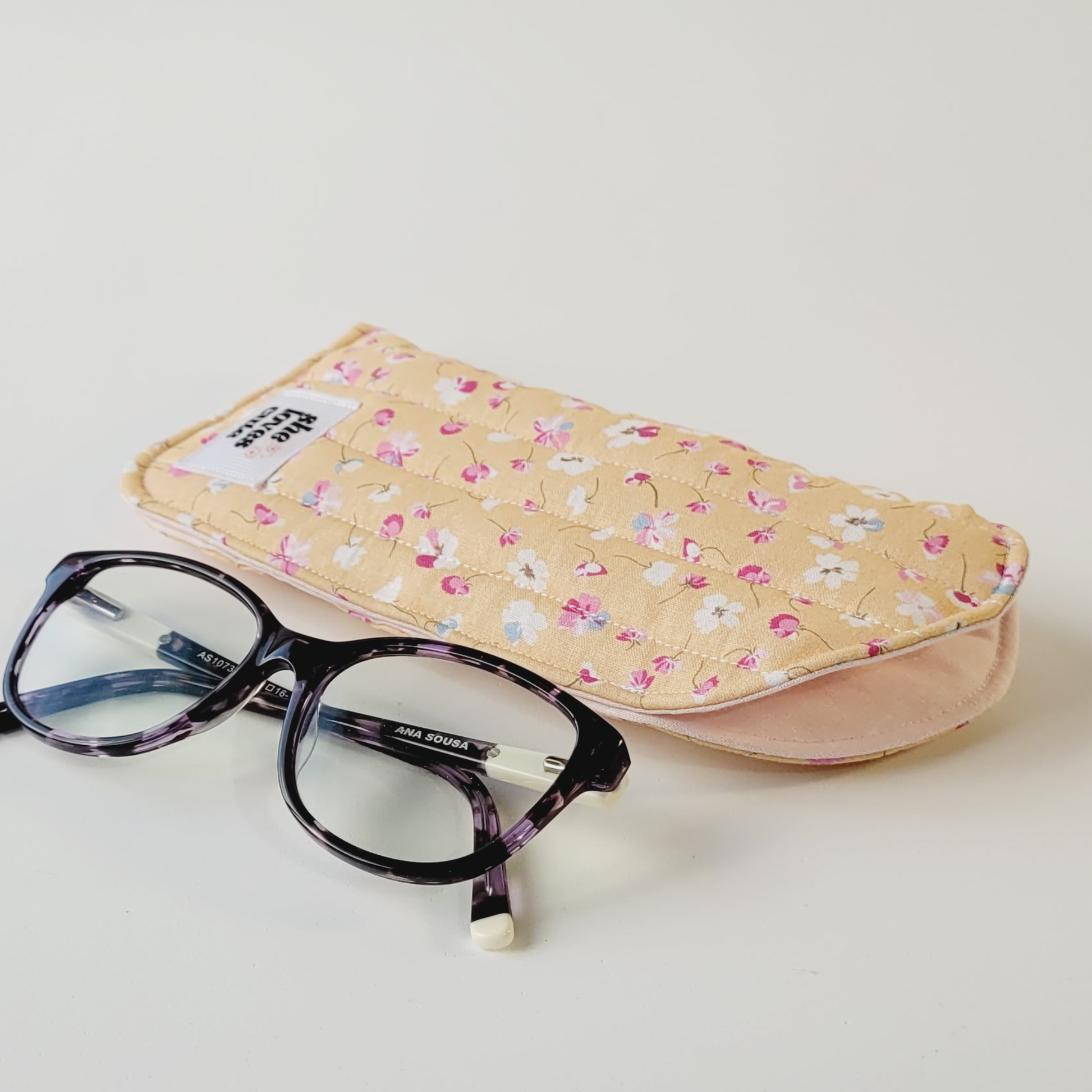 A bolsa porta-óculos She Loves Cute é feita à mão, em tecidos de algodão acolchoados, para manter os teus óculos de sol ou de vista seguros e livres de riscos.