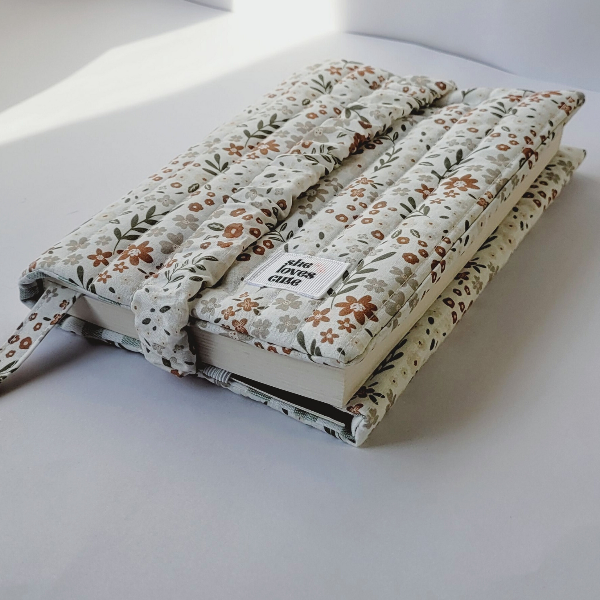 A capa de livro ajustável da She Loves Cute é feita 100% à mão, com tecidos de algodão macios e acolchoados, que cuidam das tuas leituras com todo o carinho.