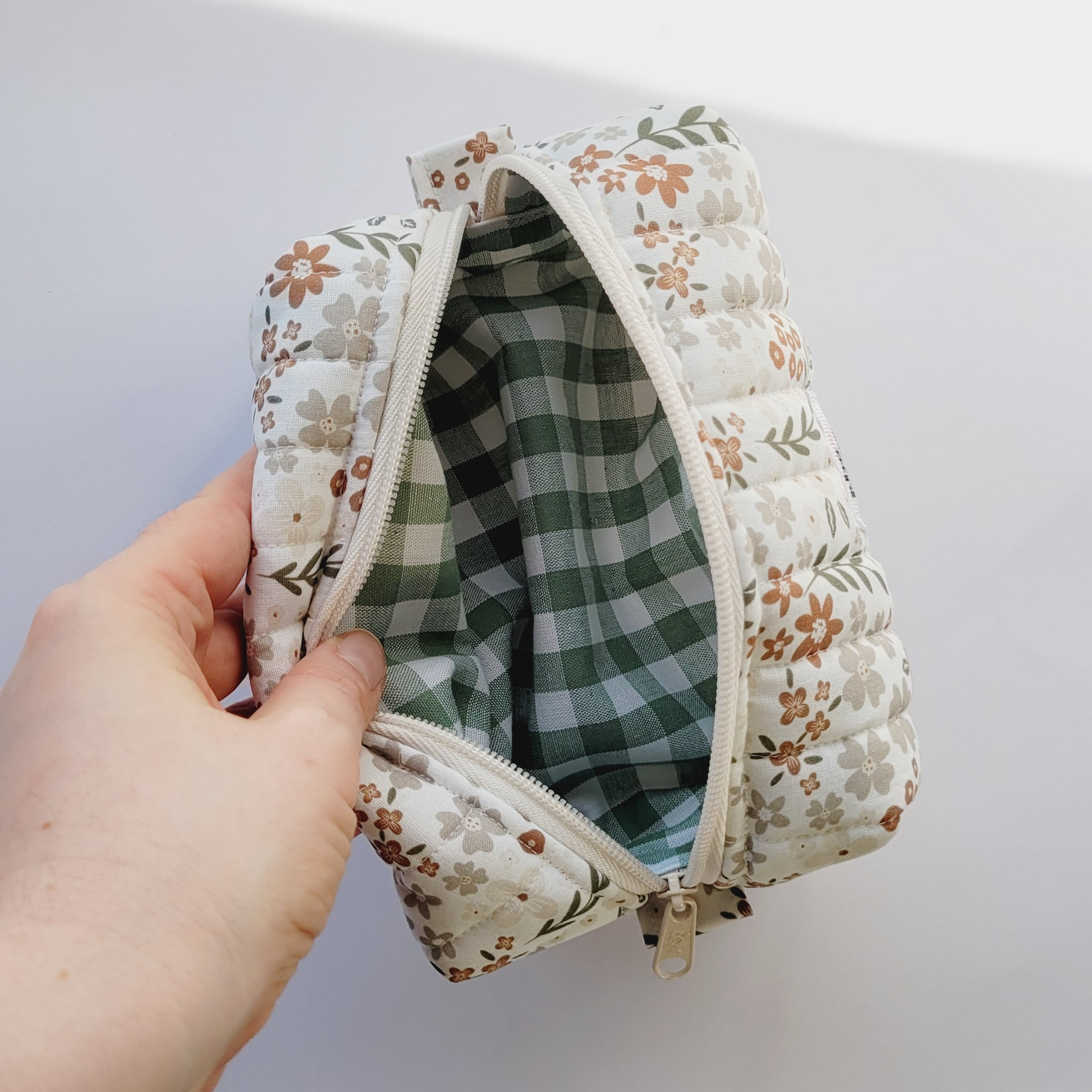 - Pequena: perfeita para levares na tua mala do dia a dia — cabe maquilhagem, essenciais de beleza ou pequenos objetos que queres sempre à mão.
