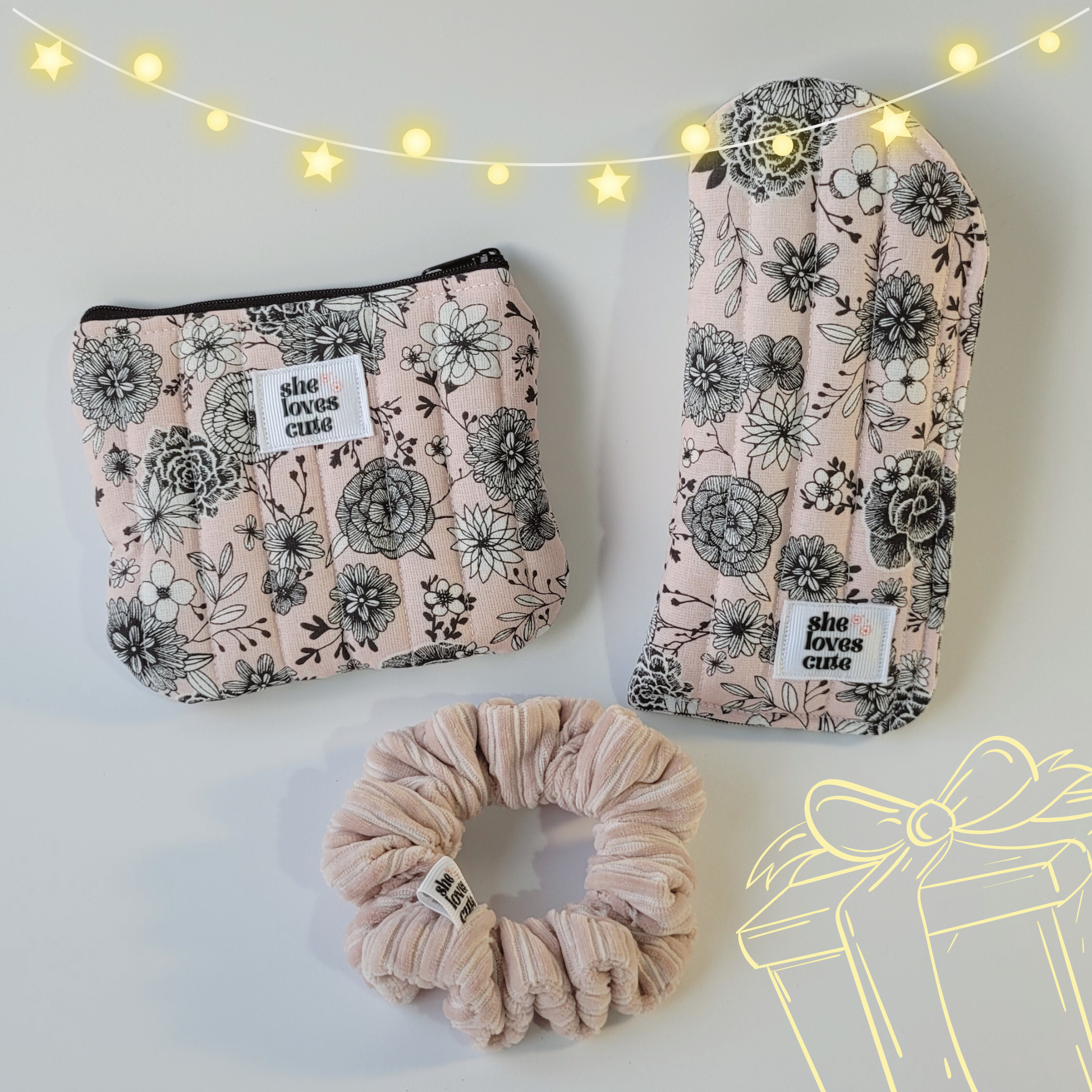 KIT PRESENTE COZY CHARM CLÁUDIA [Mini Pouch + Porta-Óculos + Scrunchie]